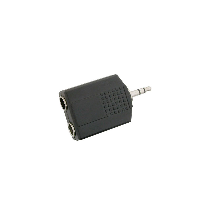 Adaptadorde 2 hembras (jacks) 6.3 mm. estéreo a macho (plug) 3.5 mm. estéreo